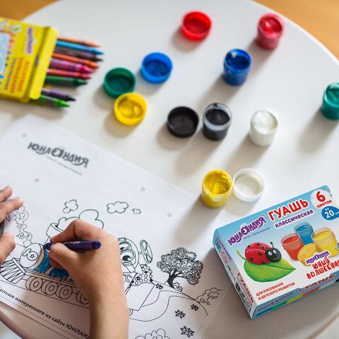Гуашь ЮНЛАНДИЯ "ЮНЫЙ ВОЛШЕБНИК", 6 цветов по 20 мл, высшее качество, 191331