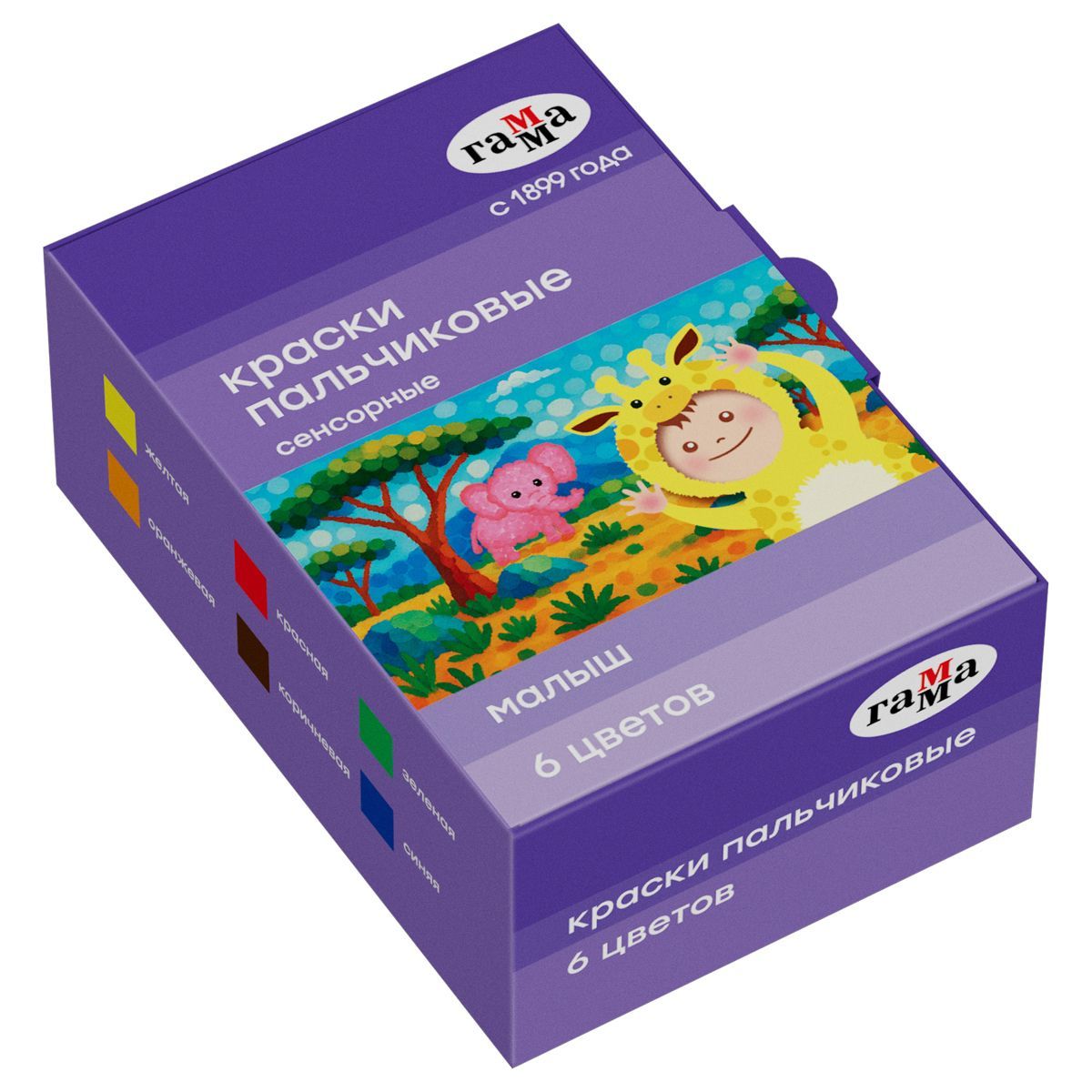 Краски пальчиковые Гамма "Малыш", сенсорные, 06 цветов, 40мл, картон. упаковка NEW