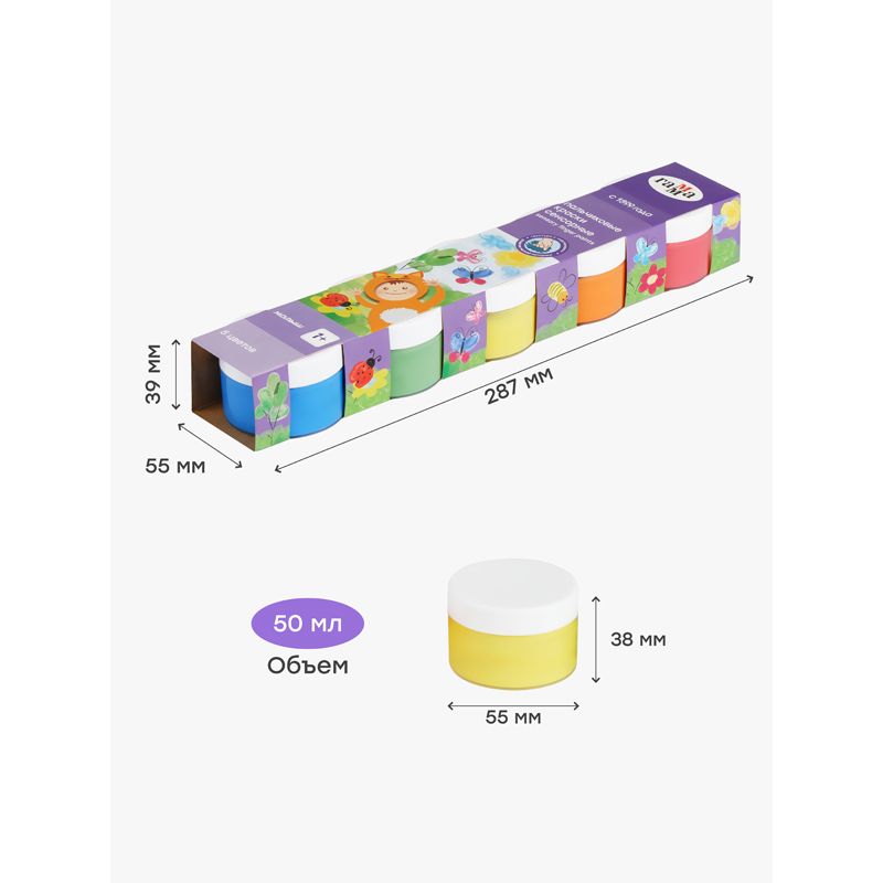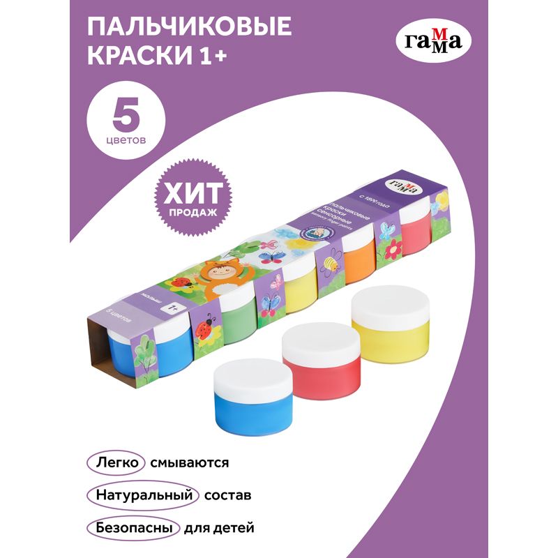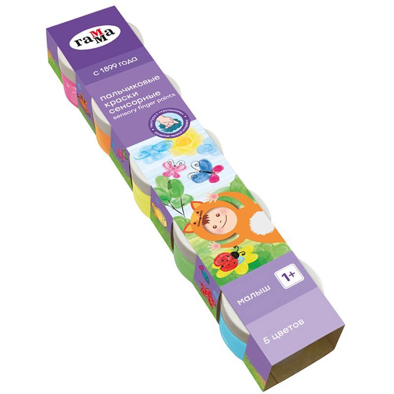 Краски пальчиковые Гамма "Малыш", сенсорные, 1+, 05 цветов, 50мл, картон. упаковка