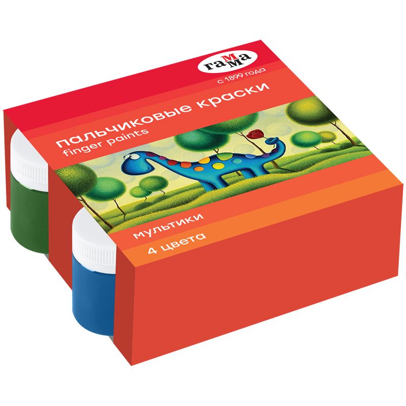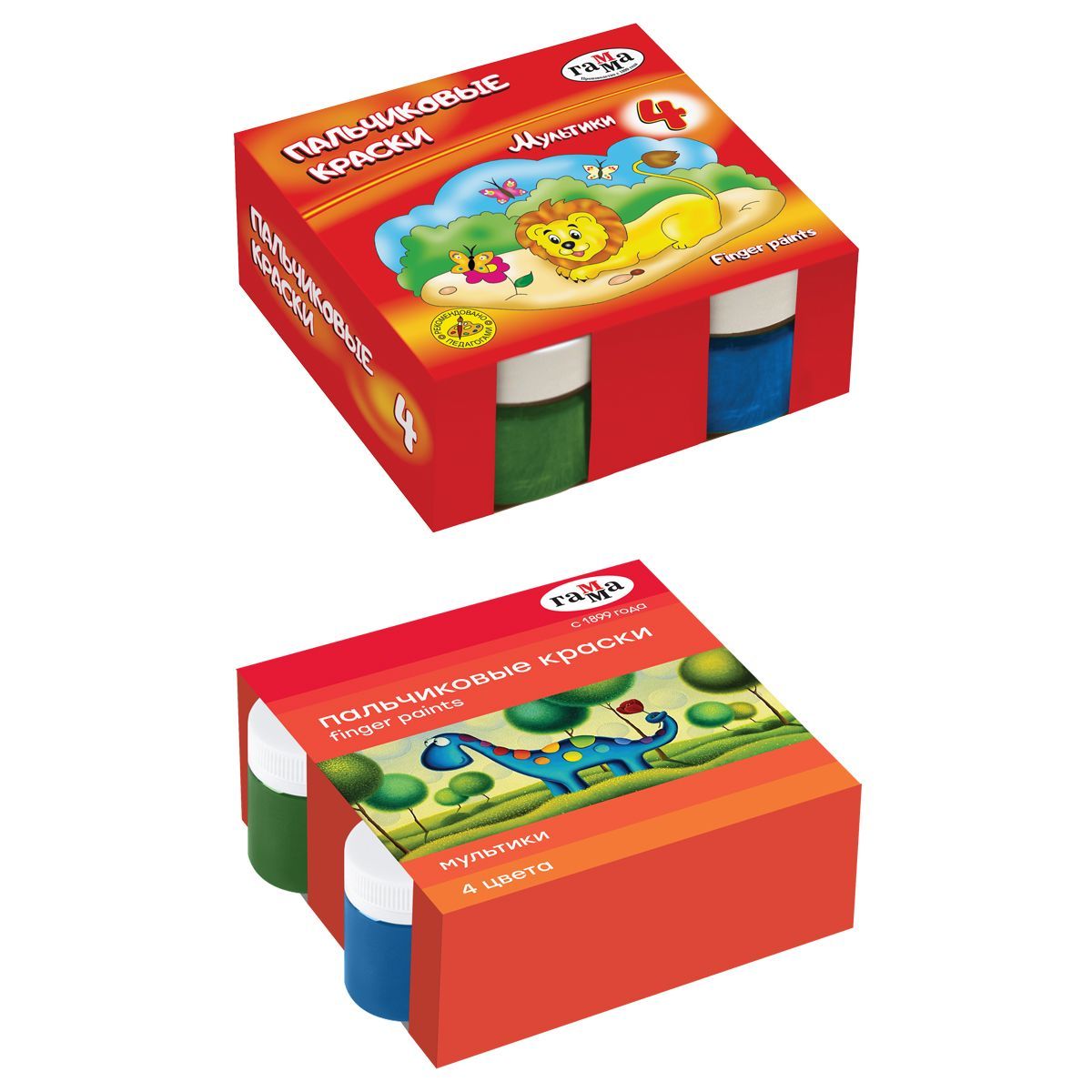 Краски пальчиковые Гамма "Мультики", классические, 04 цвета, 100мл, картон. упаковка