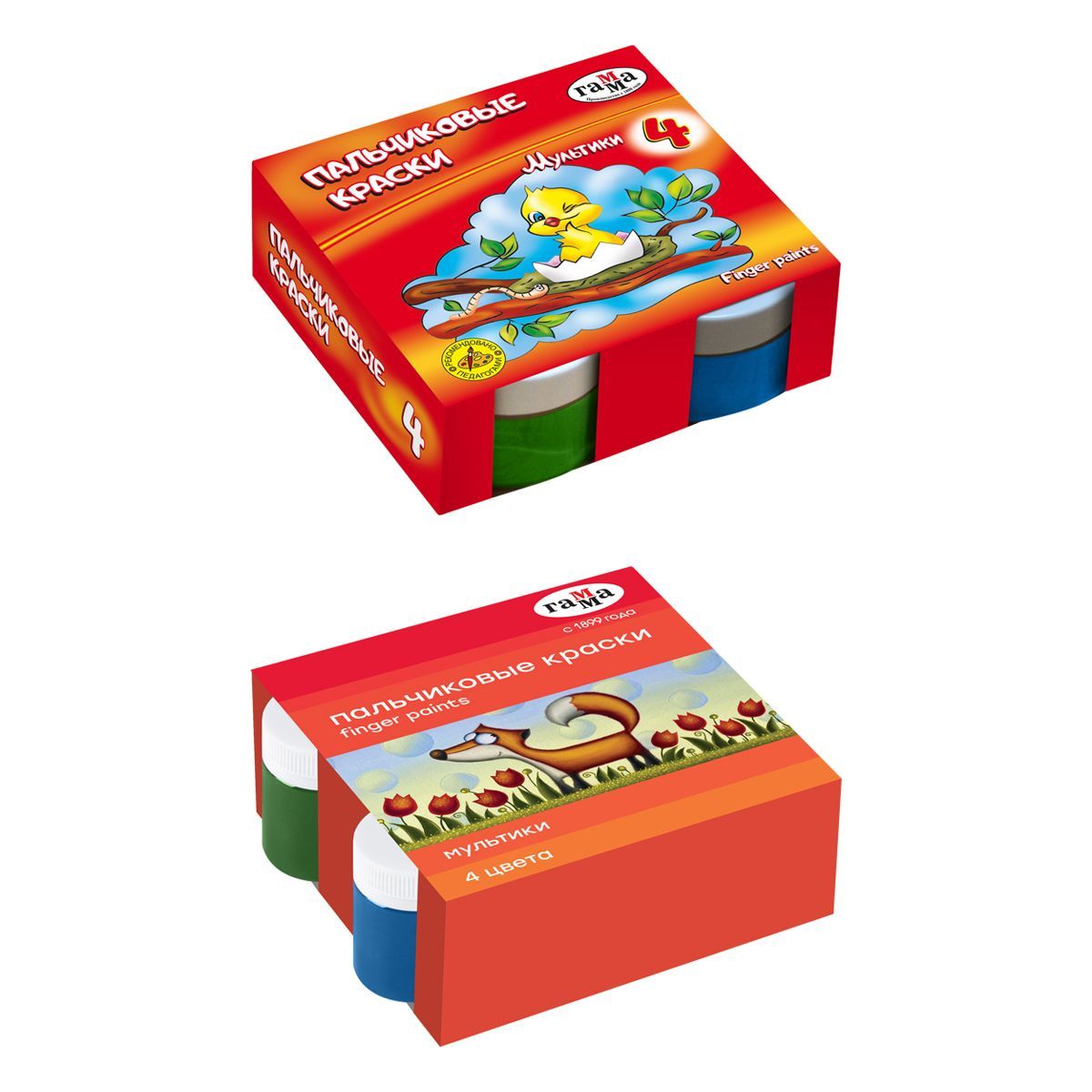 Краски пальчиковые Гамма "Мультики", классические, 04 цвета, 50мл, картон. упак