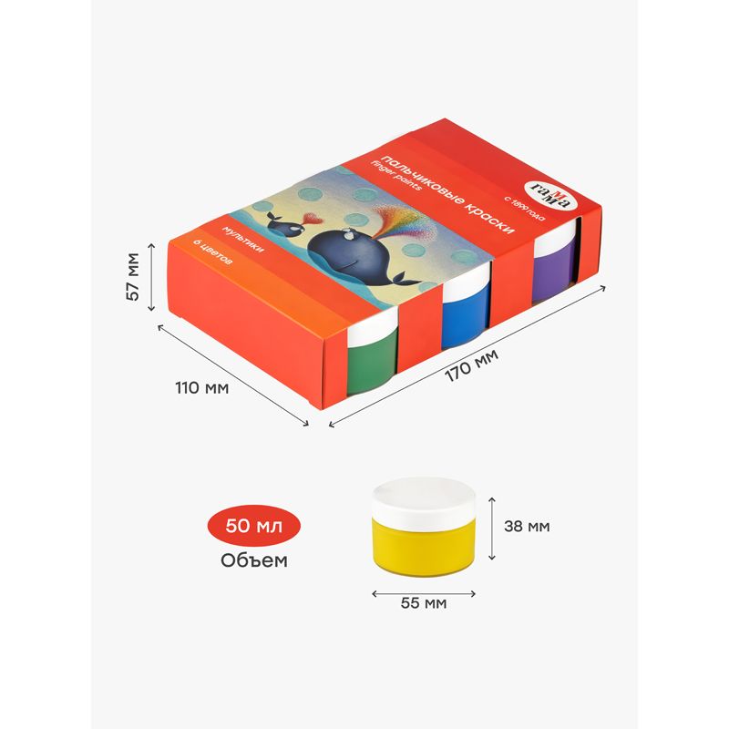 Краски пальчиковые Гамма "Мультики", классические, 06 цветов, 50мл, картон. упаковка
