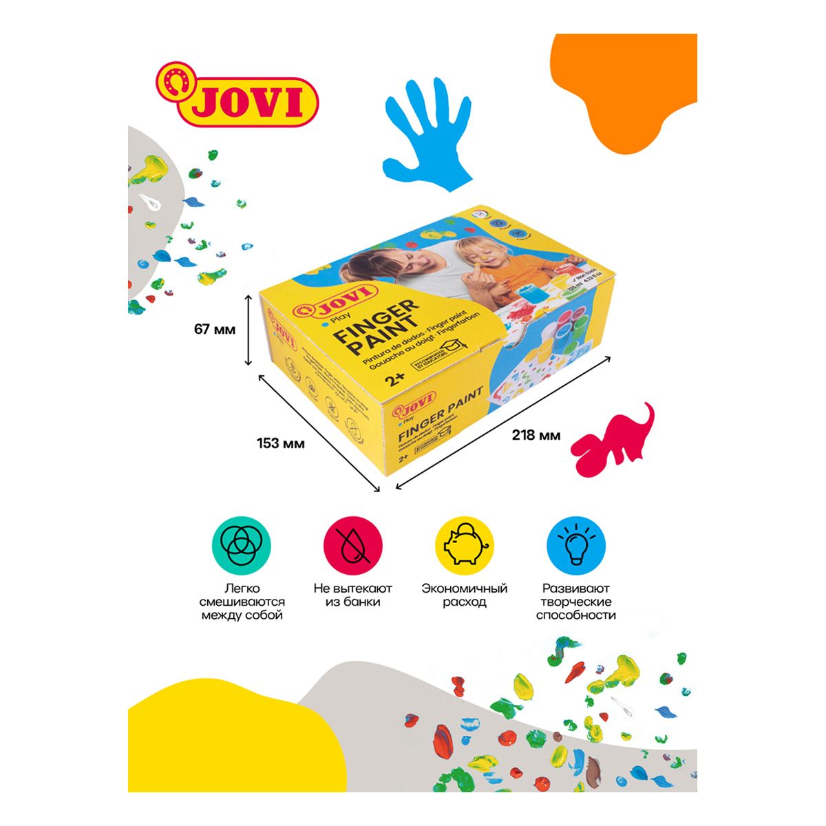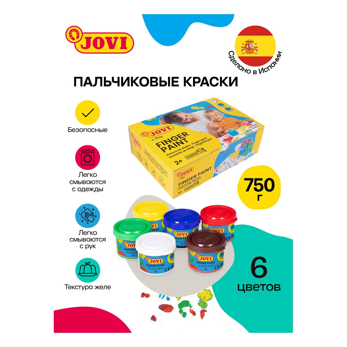 Краски пальчиковые JOVI, 06 цветов, 750г, картон