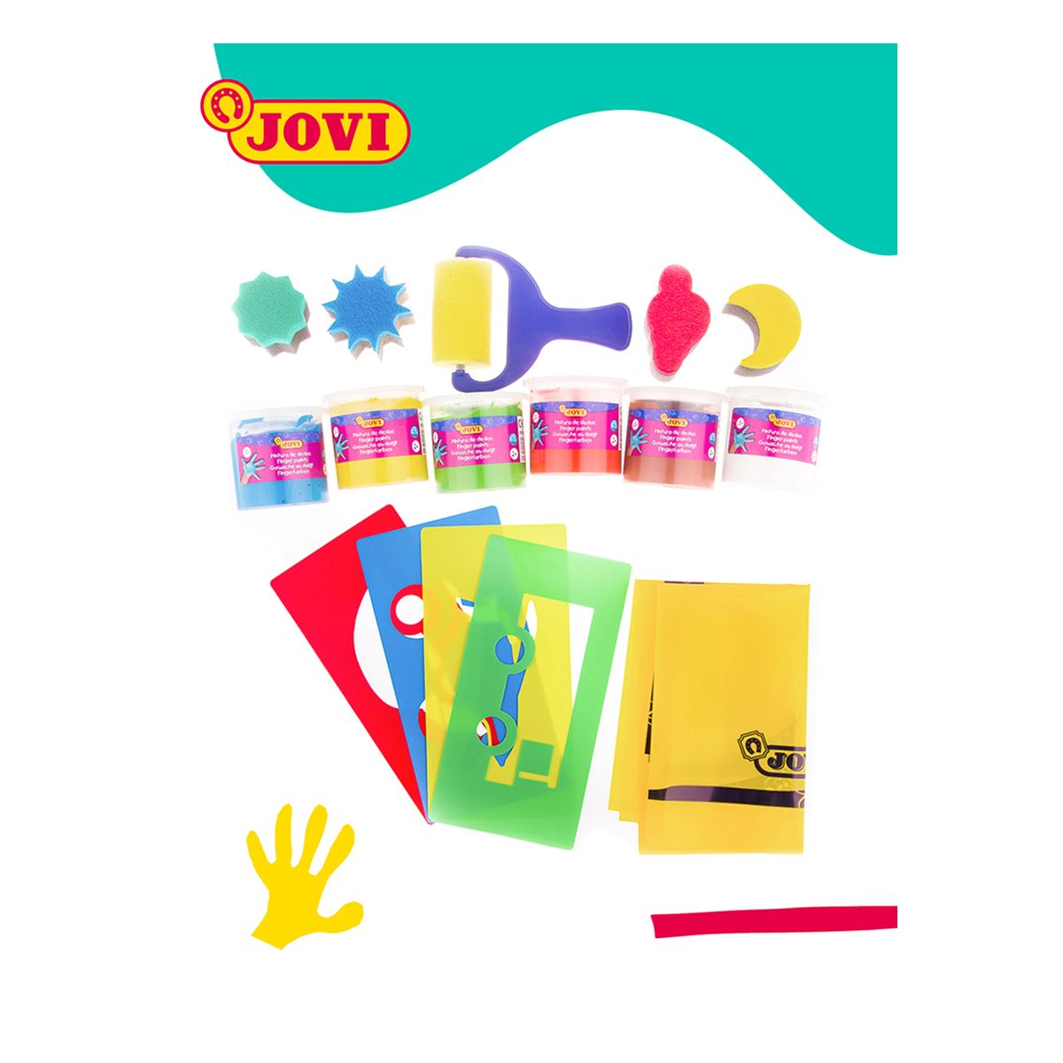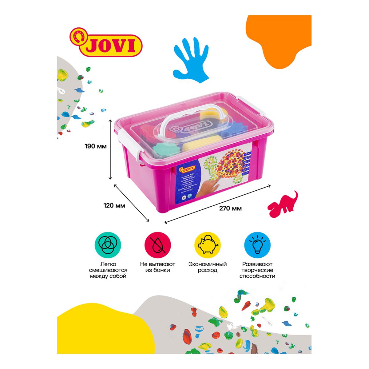 Краски пальчиковые JOVI, 06 цветов, 750г, с аксессуарами, пластиковый контейнер