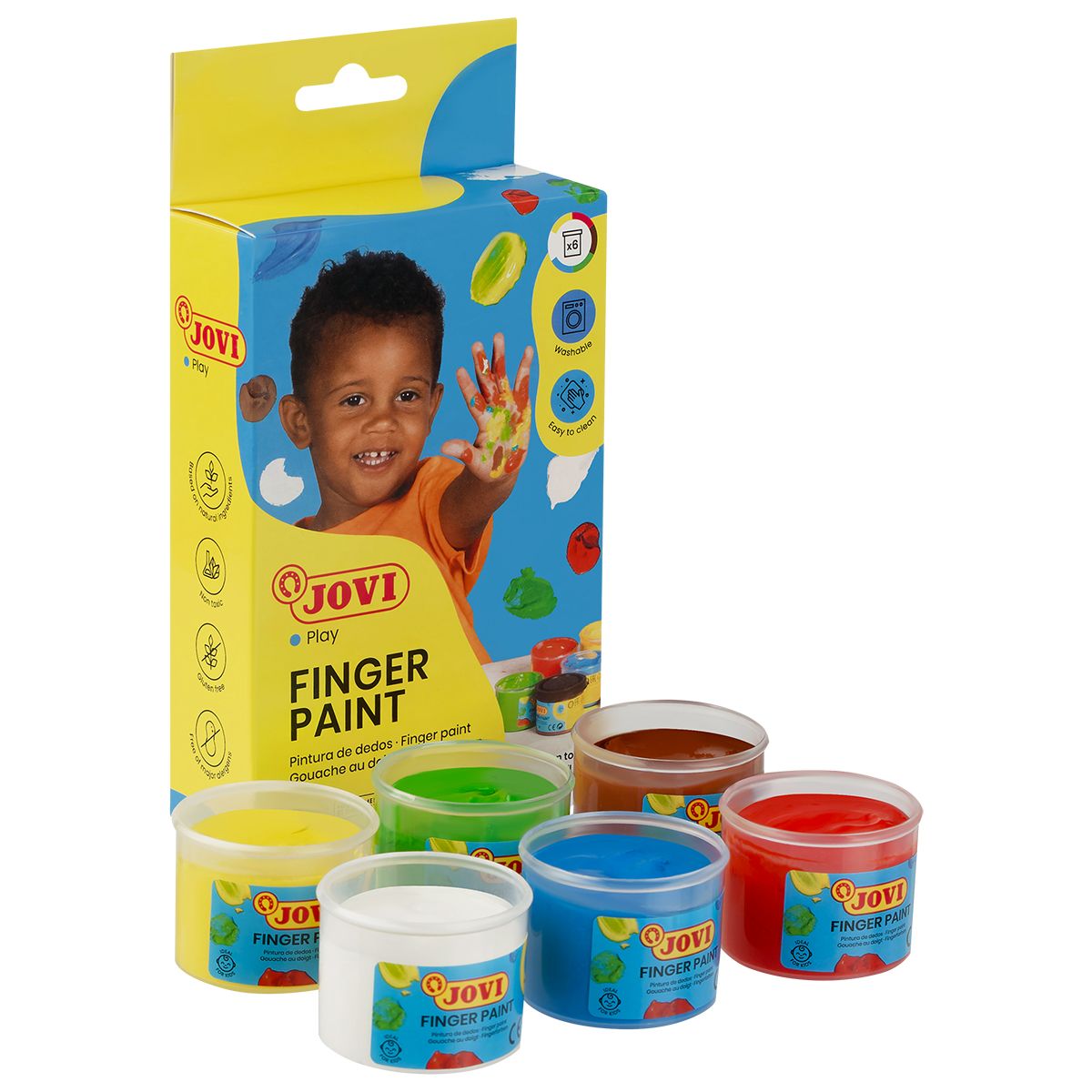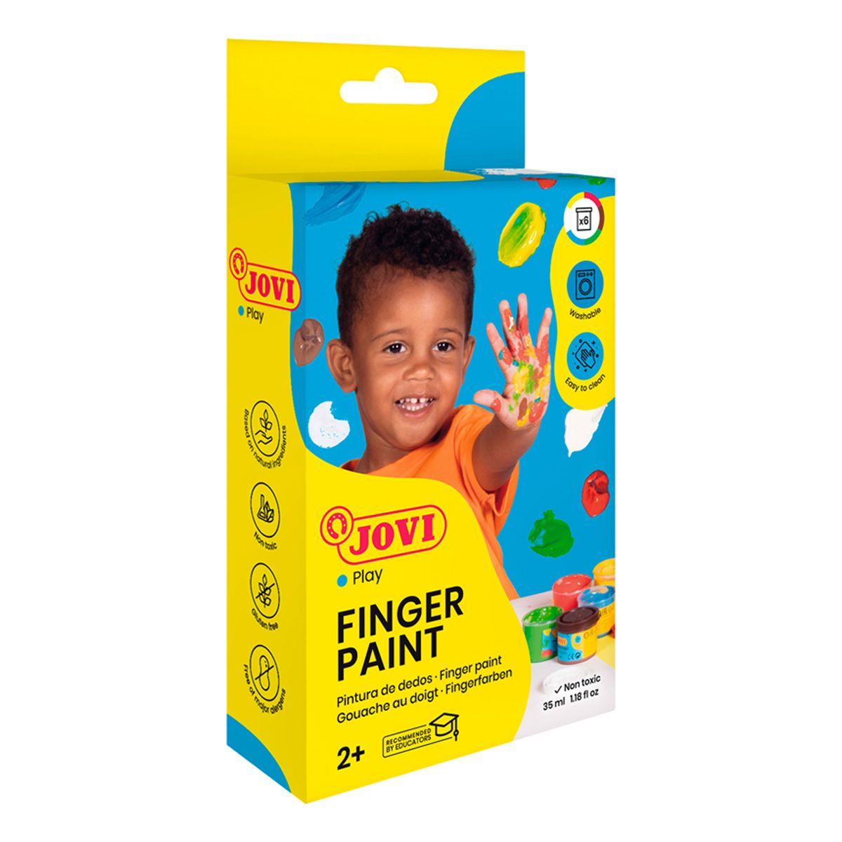 Краски пальчиковые JOVI, 06 ярких цветов по 35мл, картонная упаковка
