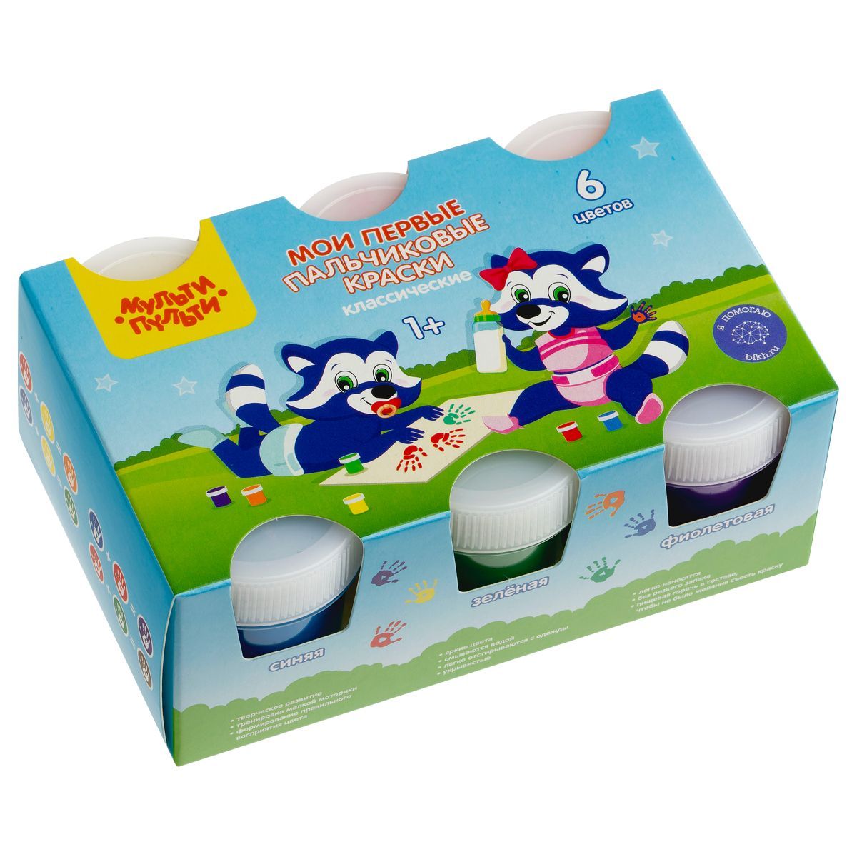 Краски пальчиковые классические Мульти-Пульти "Мои первые пальчиковые краски", 6 цветов, 210мл, для малышей, 1+, картон