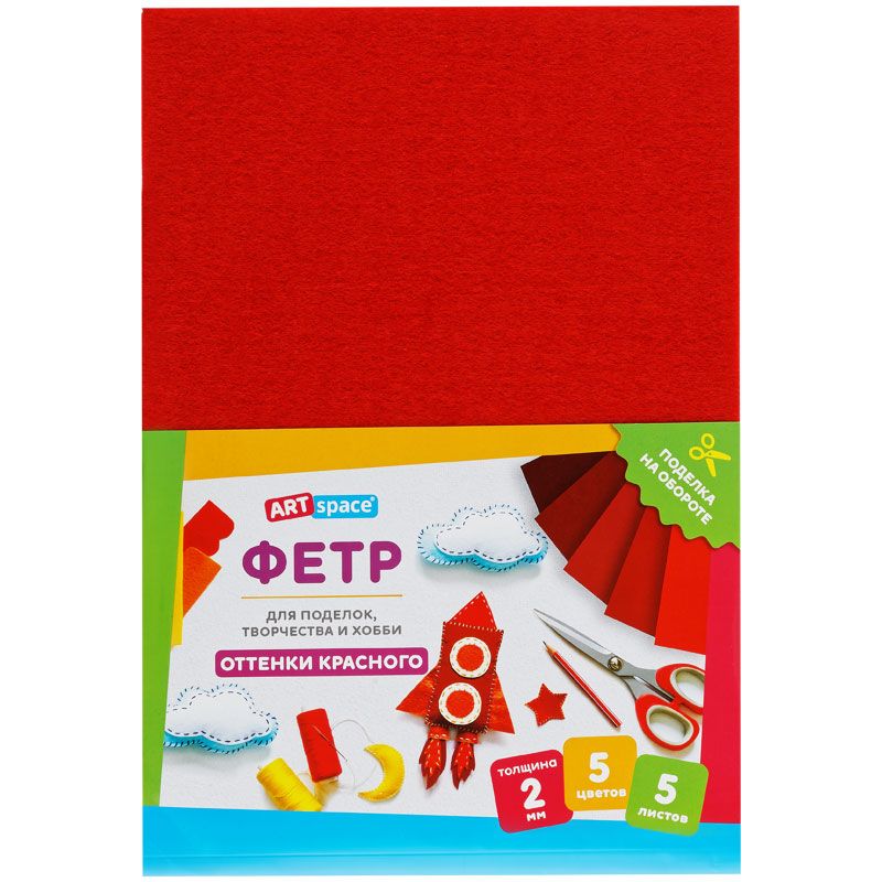 Фетр ArtSpace, А4, 5л., 5цв., 2мм, оттенки красного