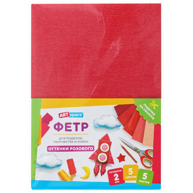 Фетр ArtSpace, А4, 5л., 5цв., 2мм, оттенки розового