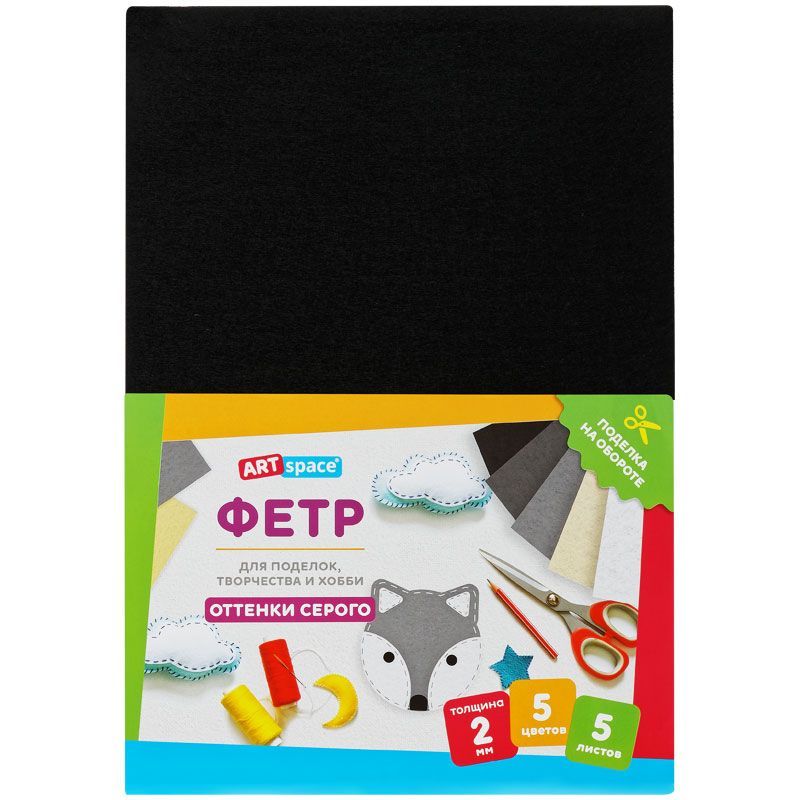 Фетр ArtSpace, А4, 5л., 5цв., 2мм, оттенки серого