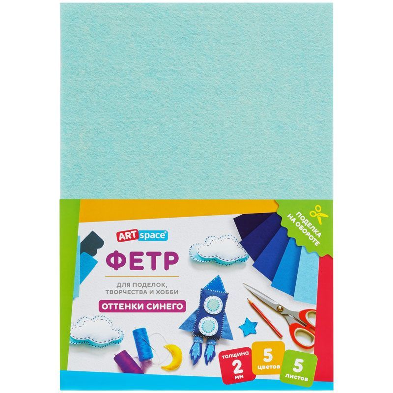 Фетр ArtSpace, А4, 5л., 5цв., 2мм, оттенки синего