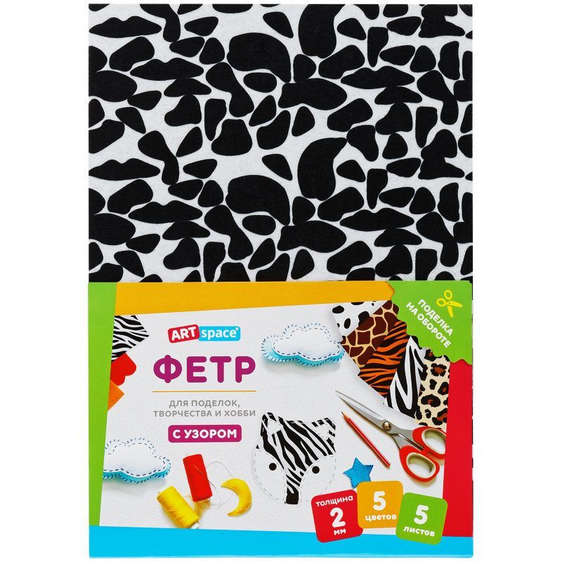 Фетр ArtSpace, А4, 5л., 5цв., 2мм, с узором