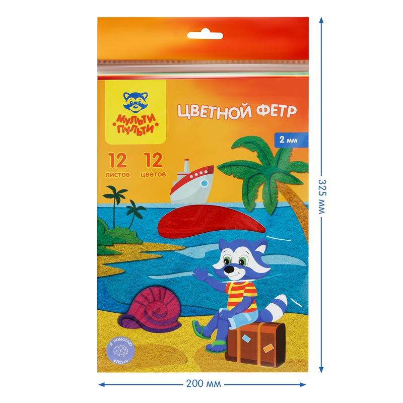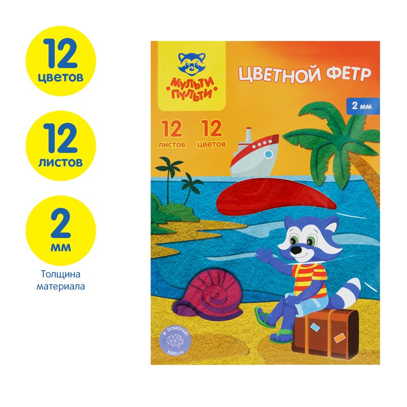 Фетр Мульти-Пульти, А4, 12л., 12цв., 2мм, "Приключения Енота"