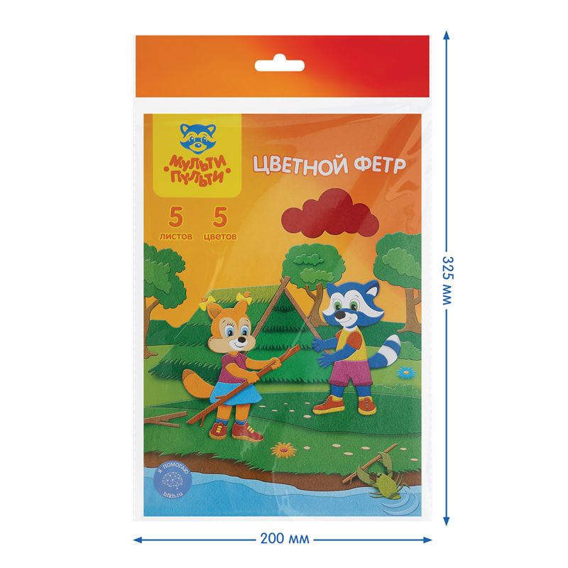 Фетр Мульти-Пульти "Приключения Енота", А4, 5л., 5цв., 2мм