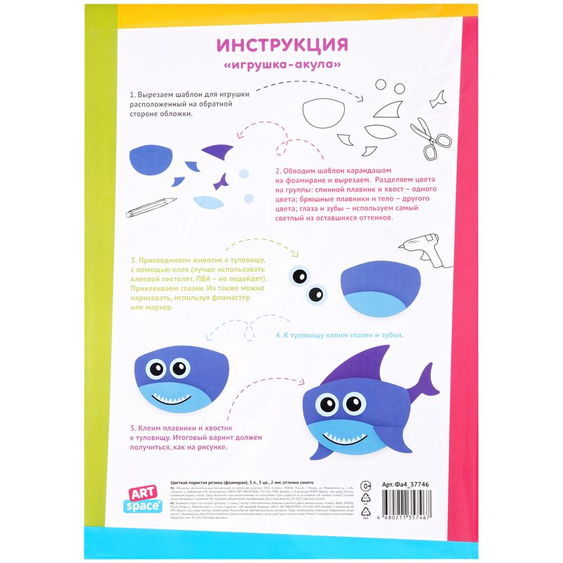 Цветная пористая резина (фоамиран) ArtSpace, А4, 5л., 5цв., 2мм, оттенки синего