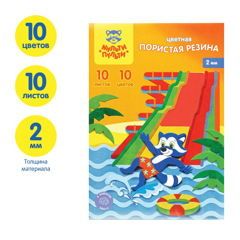 Цветная пористая резина (пенка EVA) Мульти-Пульти, А4, 10л., 10цв., 2мм, "Приключения Енота"