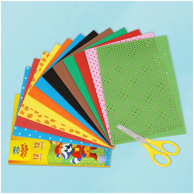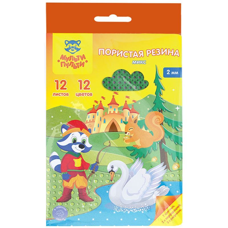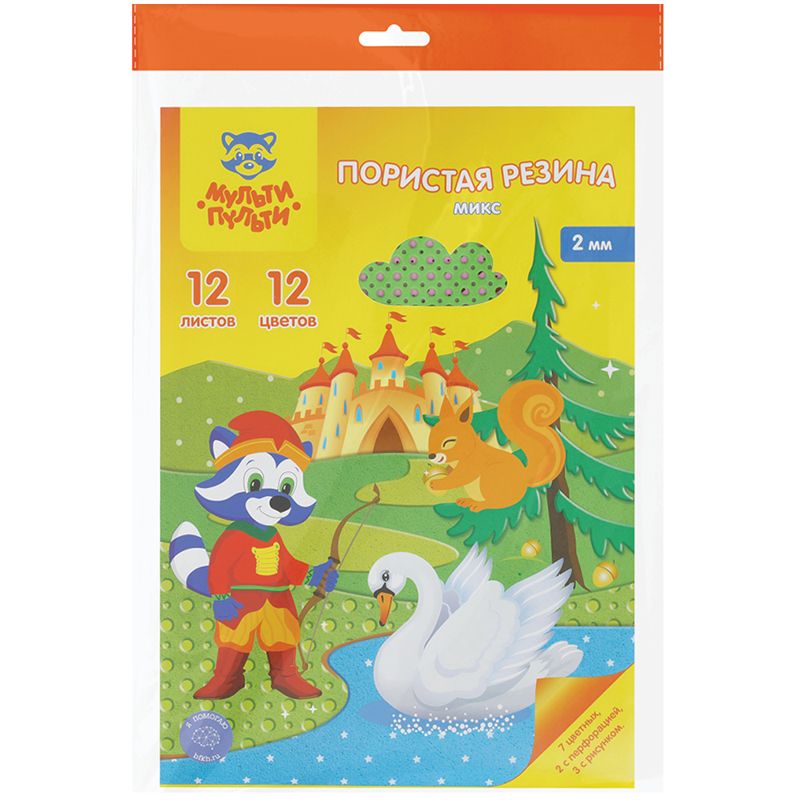 Цветная пористая резина (пенка EVA) Мульти-Пульти, А4, 12л., 12цв., 2мм, микс, "Енот в волшебном мире"