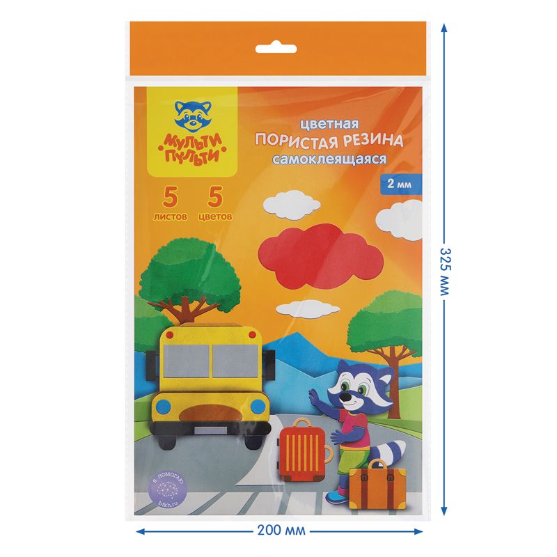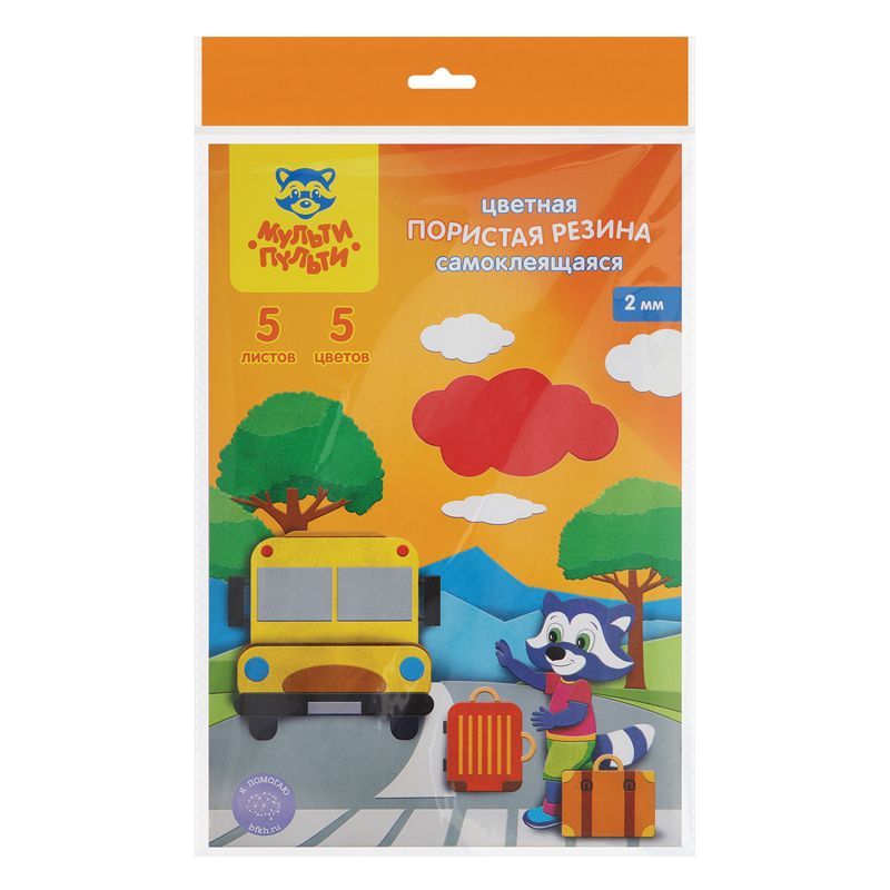 Цветная пористая резина (пенка EVA) самоклеящаяся Мульти-Пульти, А4, 5л., 5цв., 2мм, ассорти