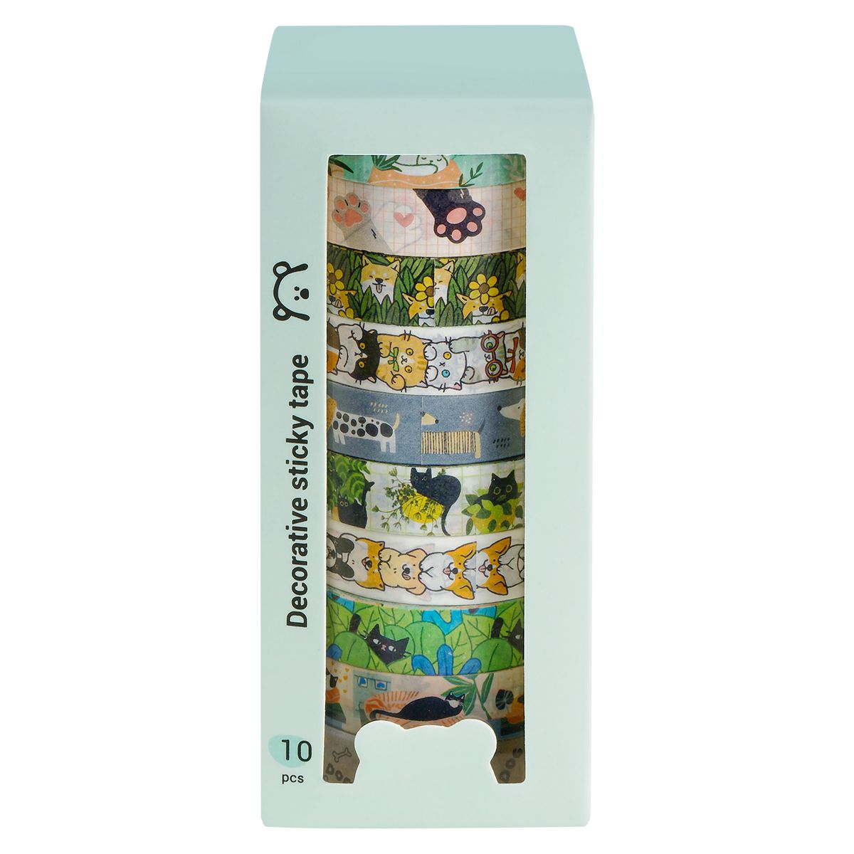 Набор клейких декоративных лент MESHU "Аnimals", 10шт, бумажный бокс