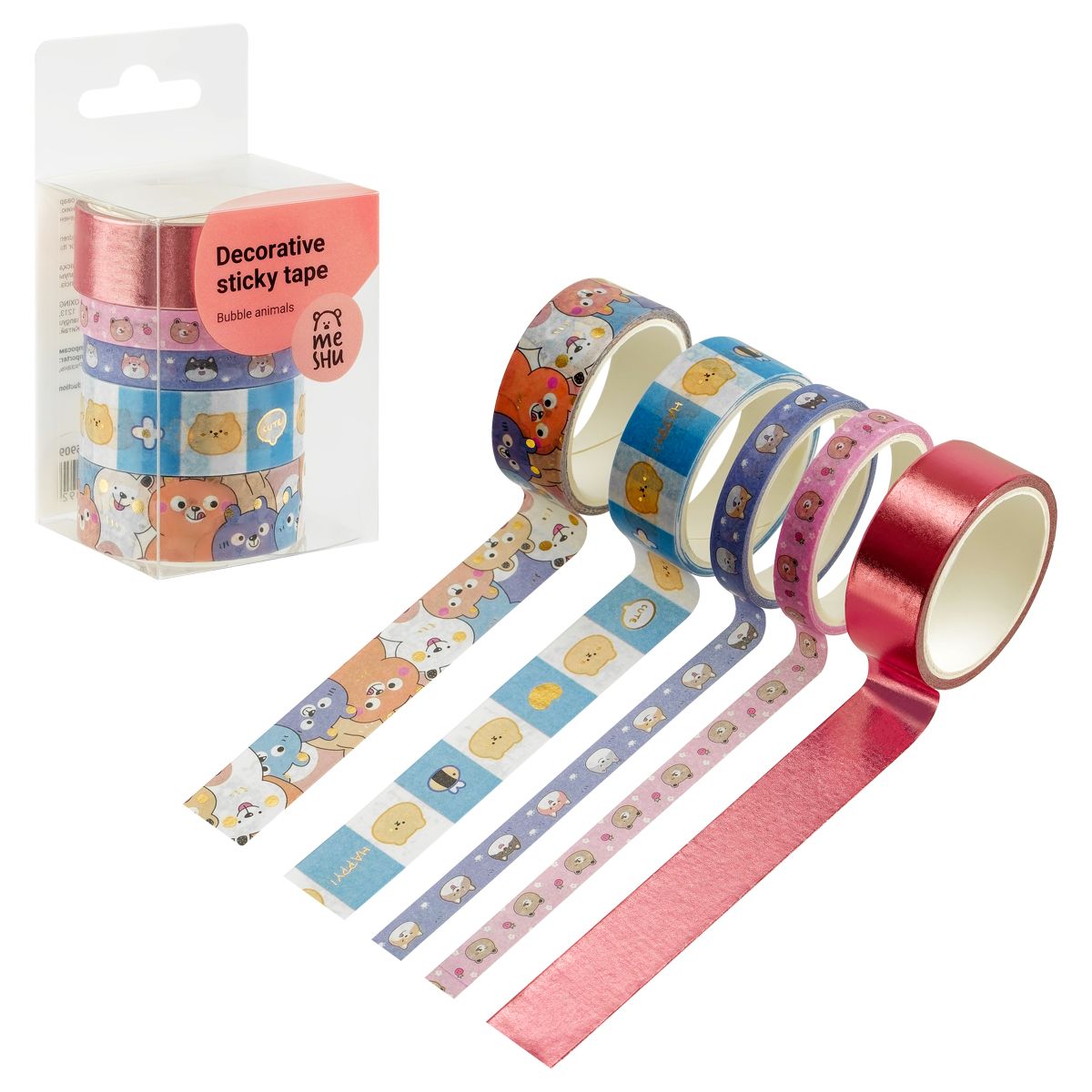Набор клейких декоративных лент MESHU "Bubble animals", 5шт