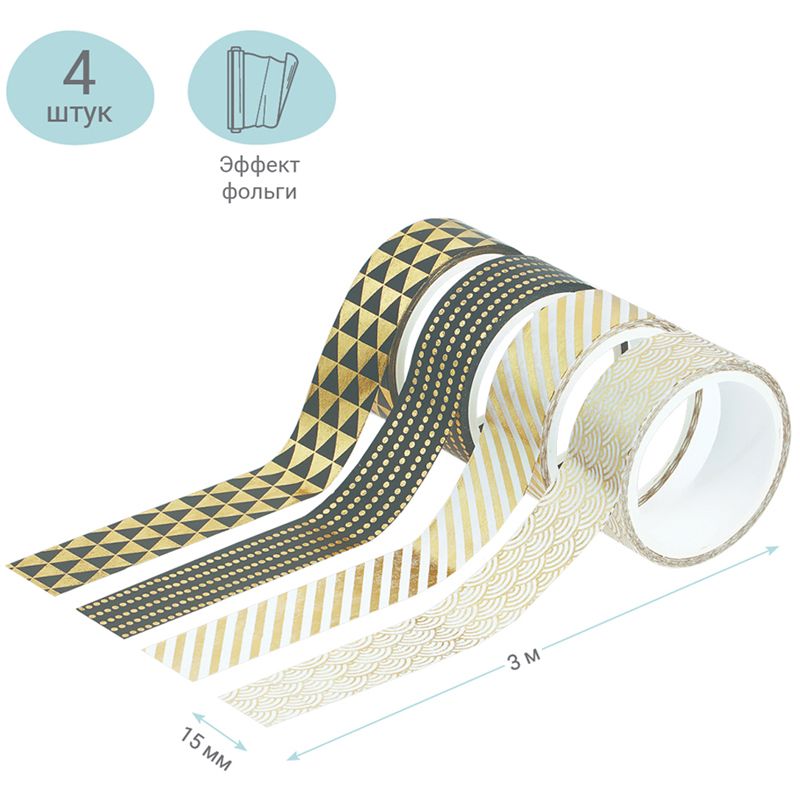Набор клейких декоративных лент MESHU "Golden shine", 4шт