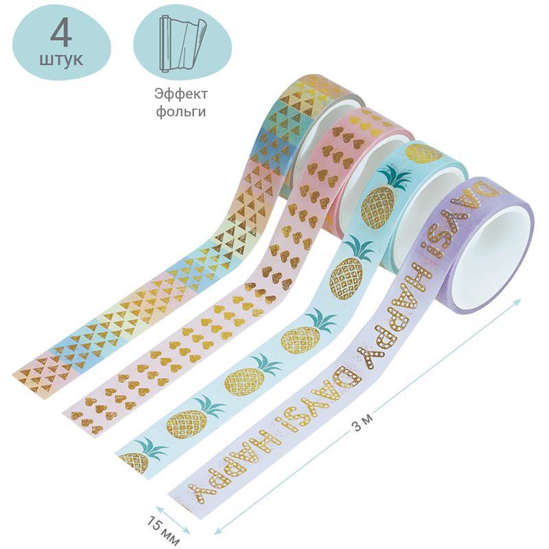 Набор клейких декоративных лент MESHU "Happy days", 4шт