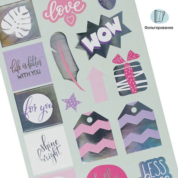 - Цветные и прозрачные наклейки — для выделения деталей и создания акцентов.