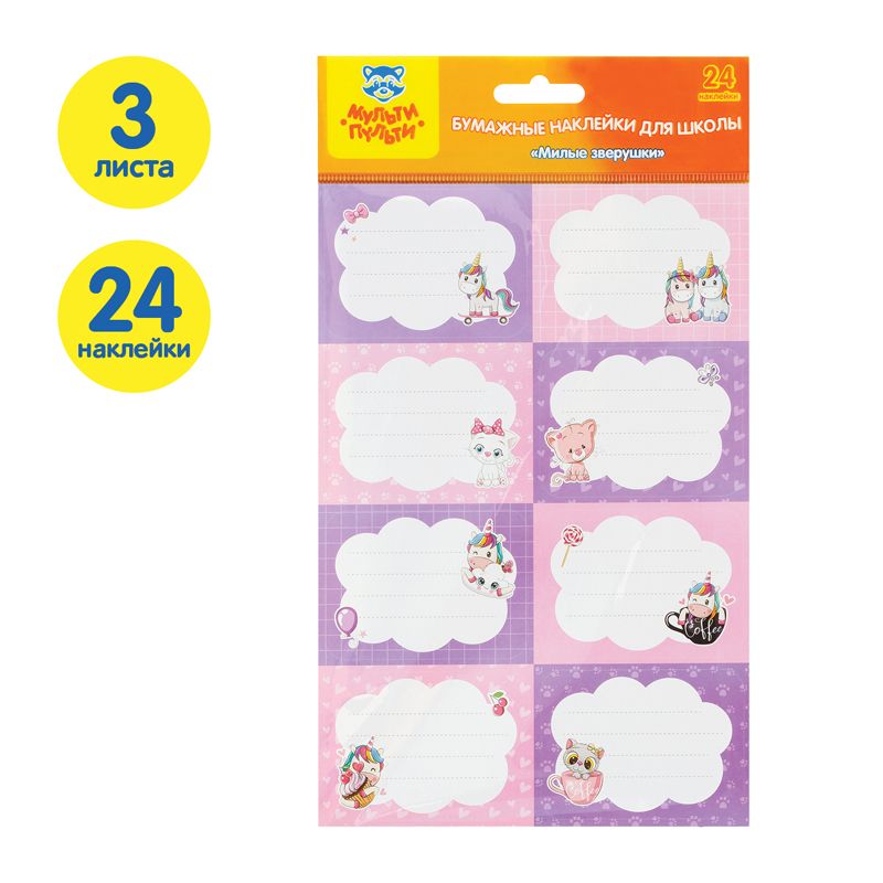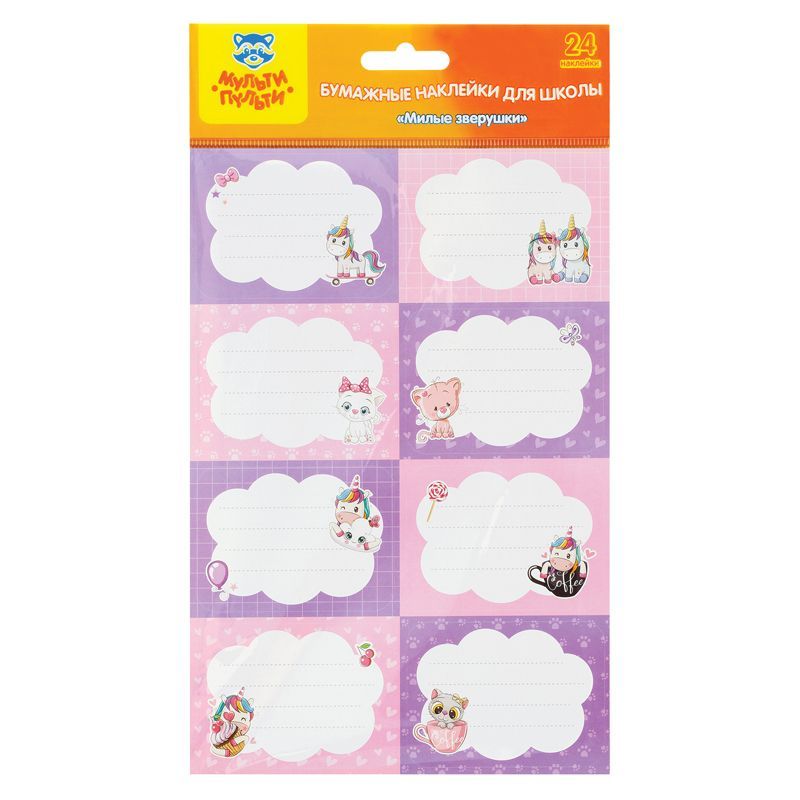 Набор бумажных наклеек для маркировки школьных принадлежностей Мульти-Пульти "Милые зверушки", 140*210, 24 наклейки, европодвес