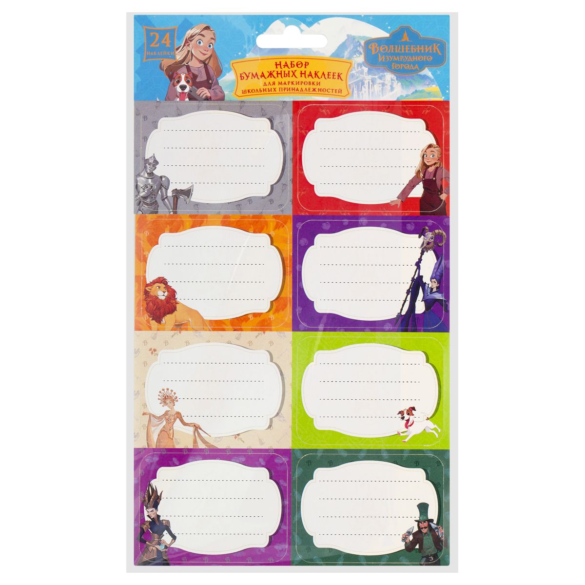 Набор бумажных наклеек для маркировки школьных принадлежностей "Волшебник изумрудного города", 140*210, 24 наклейки, европодвес