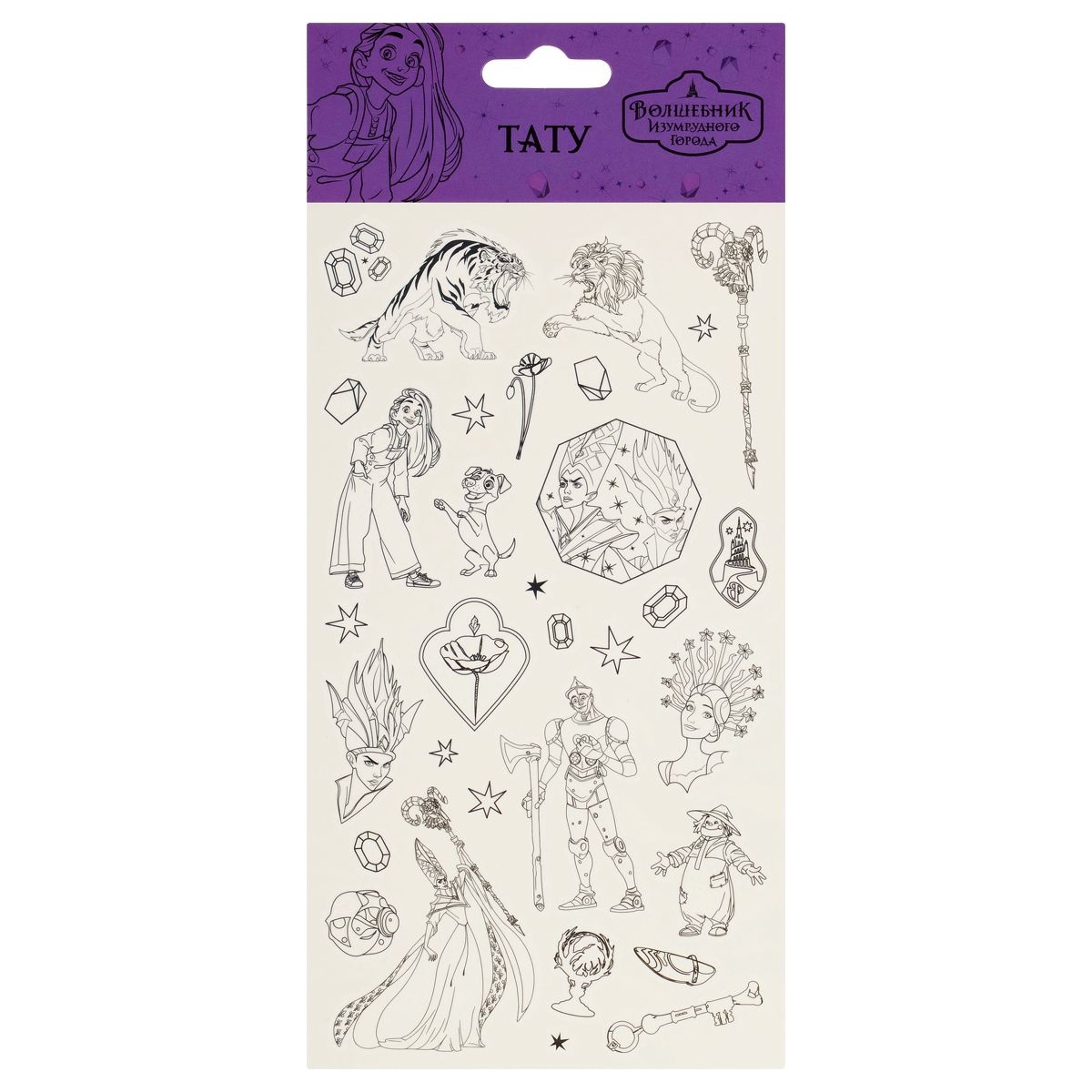 Наклейка-тату Мульти-Пульти "Волшебник изумрудного города", 10*22см, черно-белые, европодвес