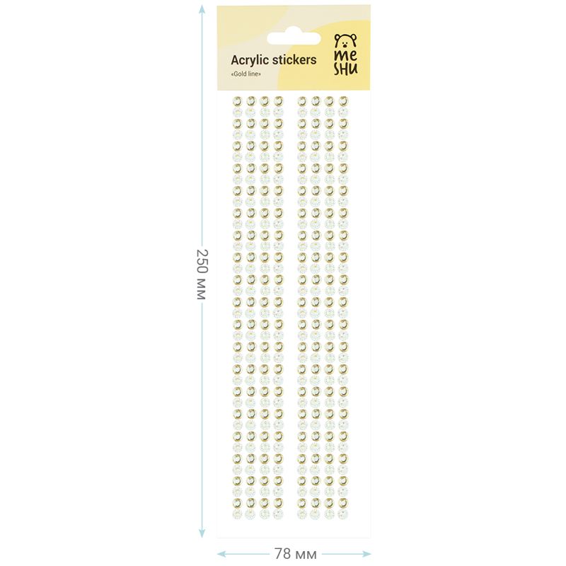 Наклейки акриловые MESHU "Gold line", 25*7,8см, стразы, 308 наклеек, инд. уп., европодвес