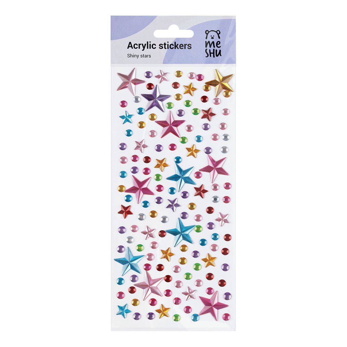 Наклейки акриловые MESHU "Shiny stars", 25*10см, стразы, 137 наклеек, инд. уп., европодвес