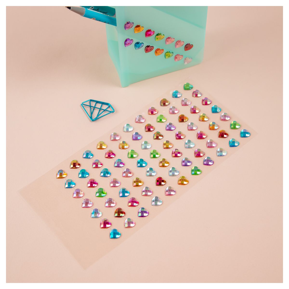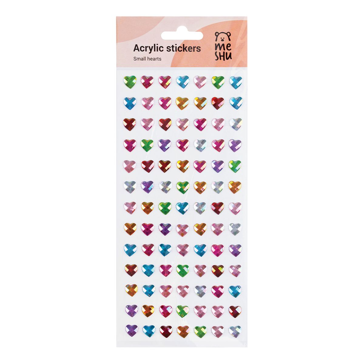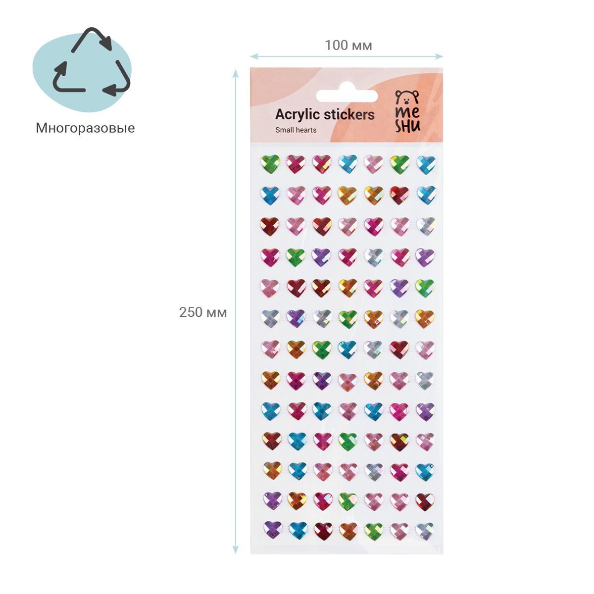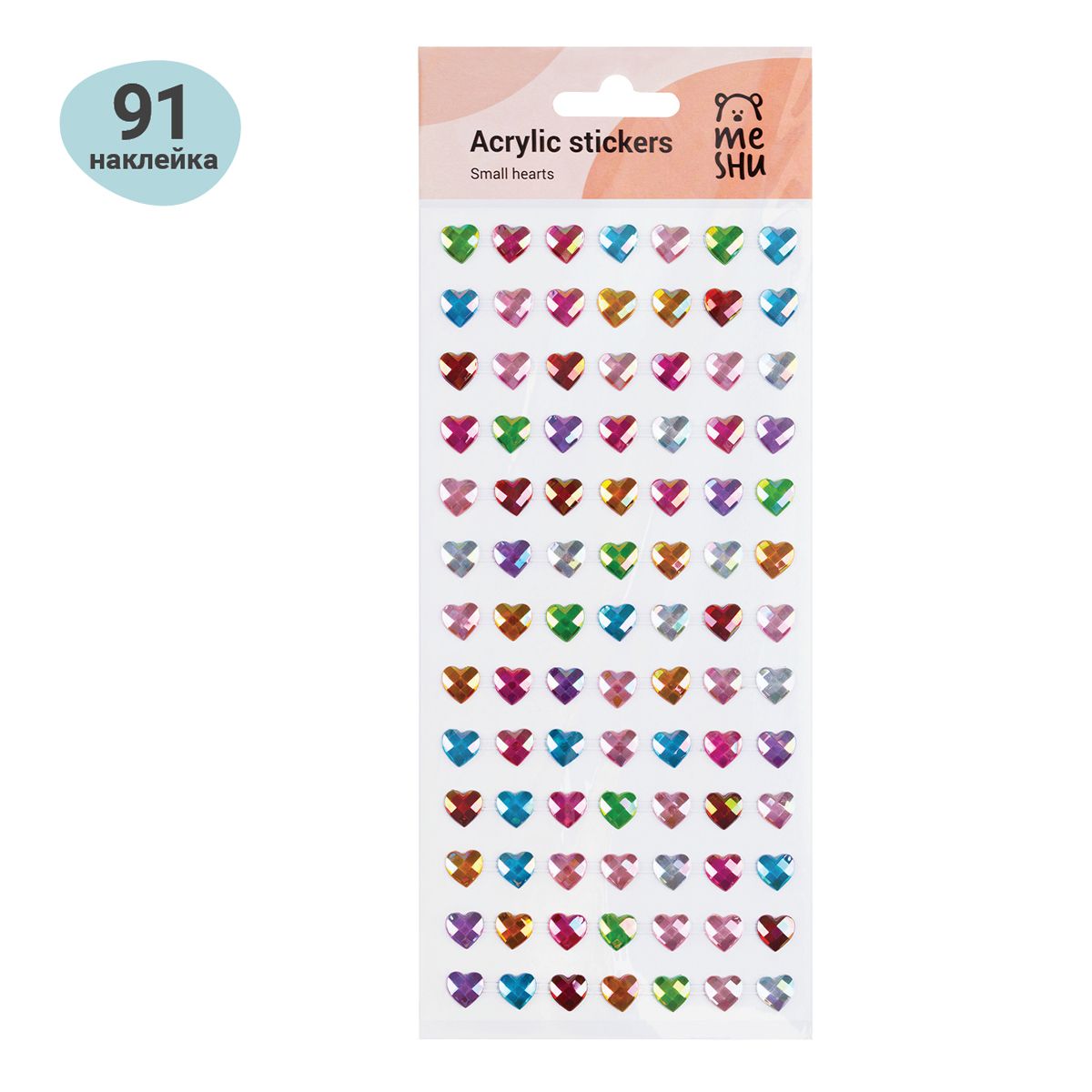 Наклейки акриловые MESHU "Small hearts", 25*10см, стразы, 91 наклейка, инд. уп., европодвес