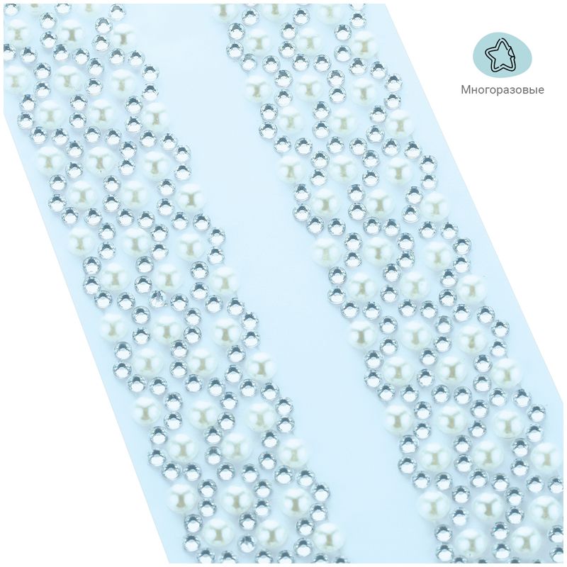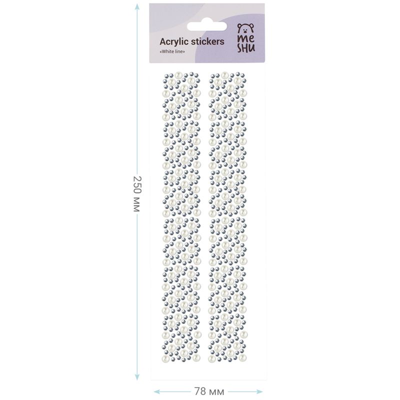 Наклейки акриловые MESHU "White line", 25*7,8см, стразы, 500 наклеек, инд. уп., европодвес