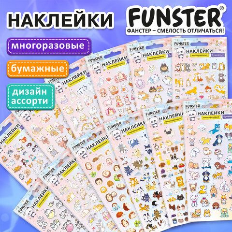 Наклейки бумажные 17,5х9,5 см, ассорти 12 видов, FUNSTER (ФАНСТЕР), 666676