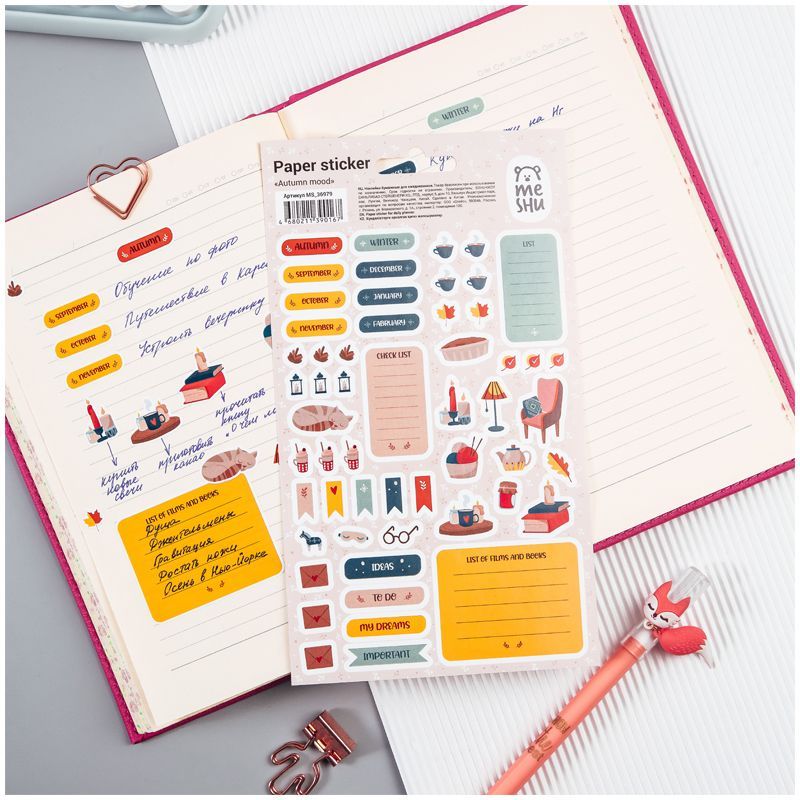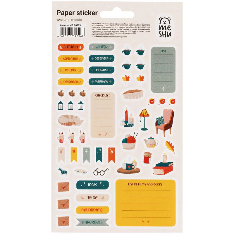 Наклейки бумажные для ежедневников MESHU "Autumn mood", 12*21см, 59 наклеек, европодвес