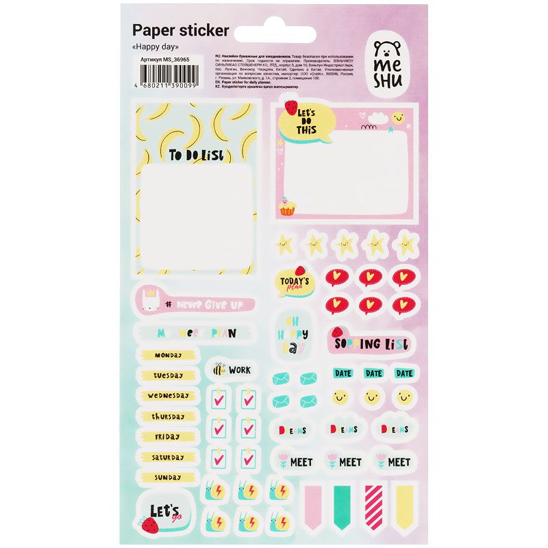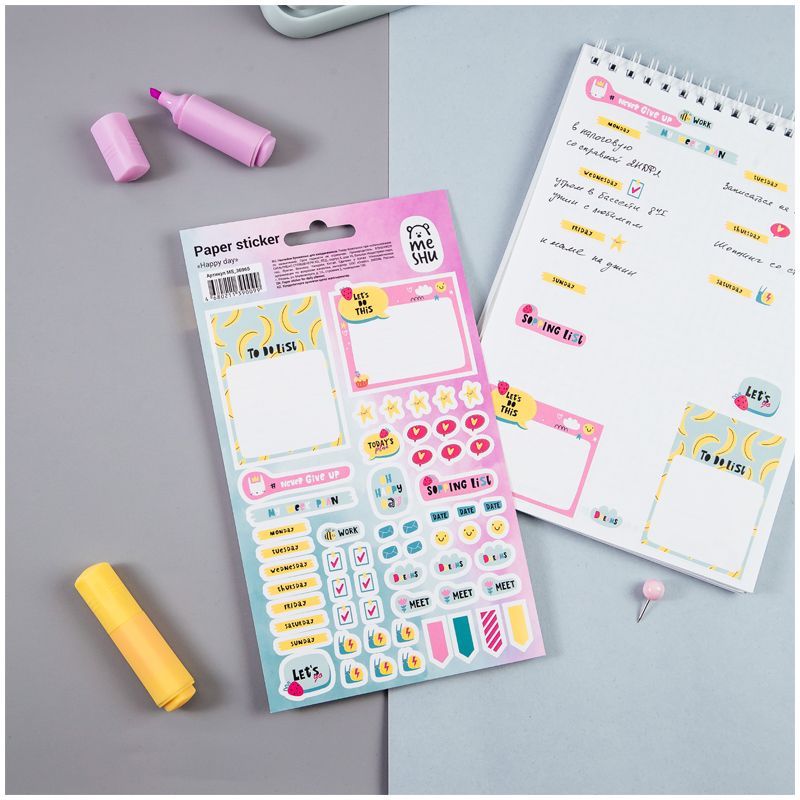 Наклейки бумажные для ежедневников MESHU "Happy day", 12*21см, 58 наклеек, европодвес