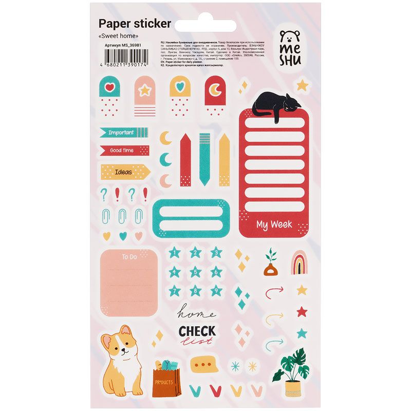 Наклейки бумажные для ежедневников MESHU "Sweet home", 12*21см, 62 наклейки, европодвес