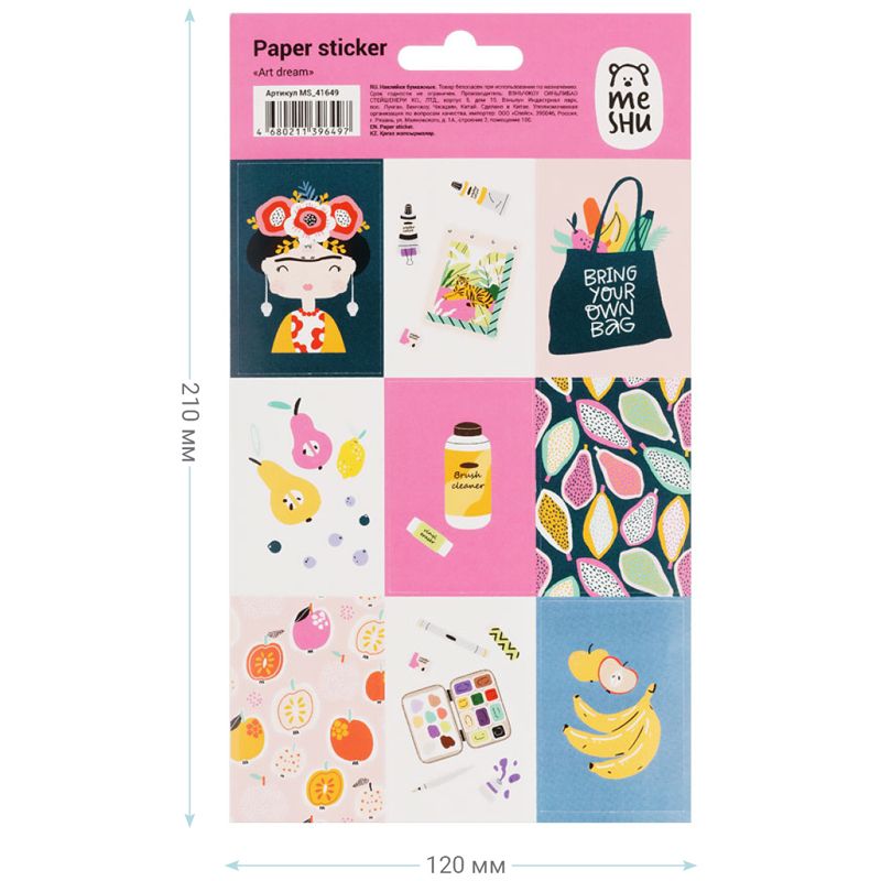 Наклейки бумажные MESHU "Art dream", 12*21см, 9 наклеек, европодвес