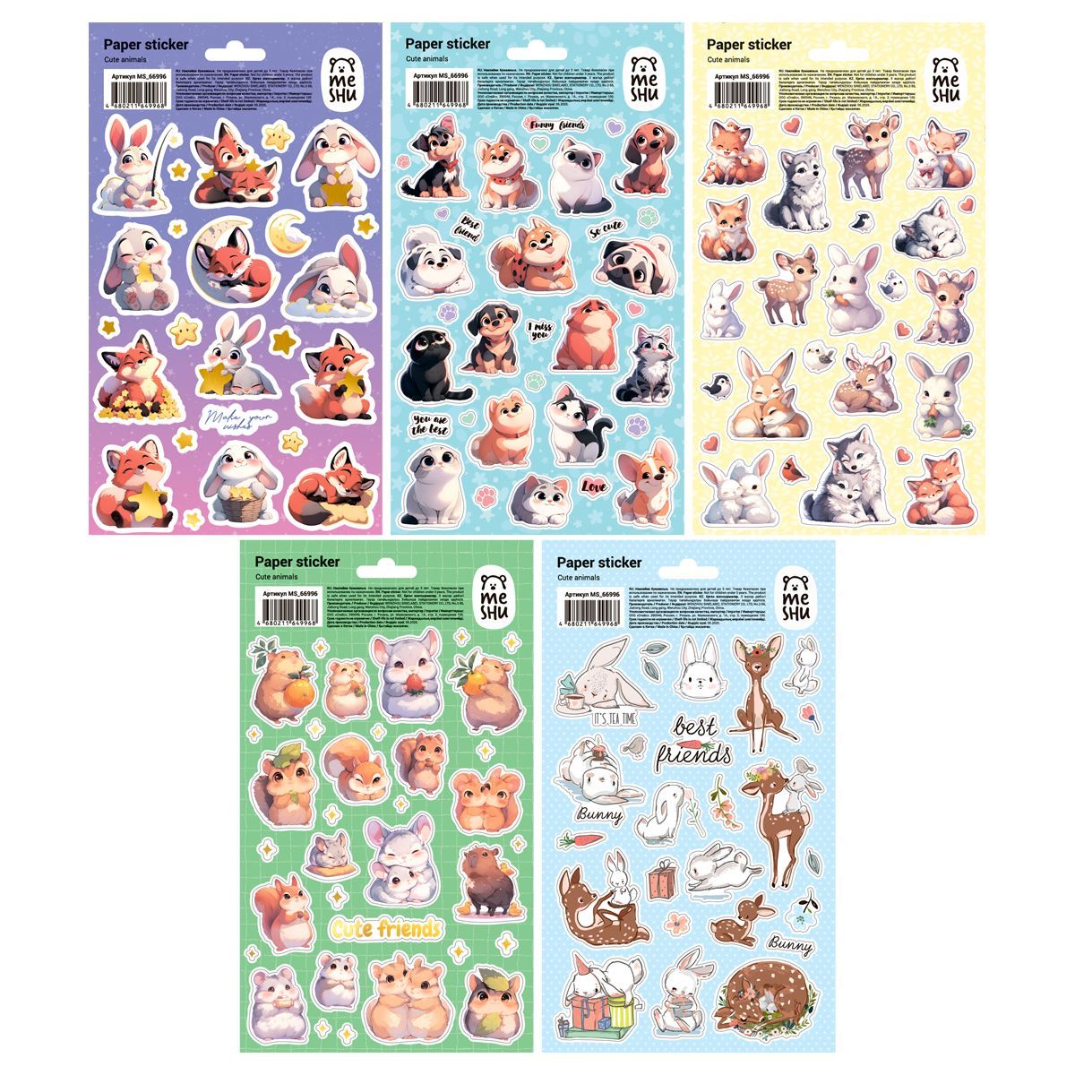Наклейки бумажные MESHU "Cute animals", 12*21см, ассорти 10шт., европодвес