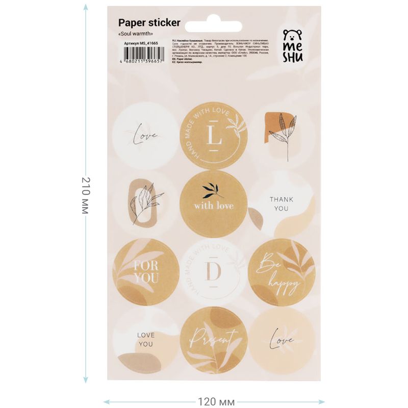 Наклейки бумажные MESHU "Soul warmth", 12*21см, 12 наклеек, европодвес