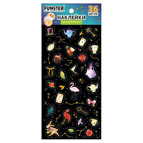 Наклейки декоративные "Black edition", 17,5х9 см, ассорти 6 видов, FUNSTER (ФАНСТЕР), 666100
