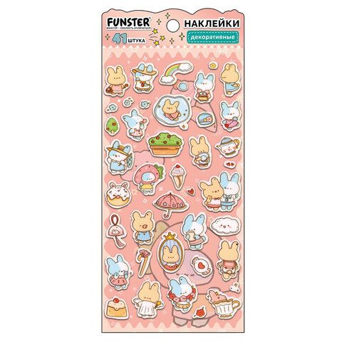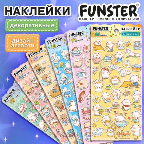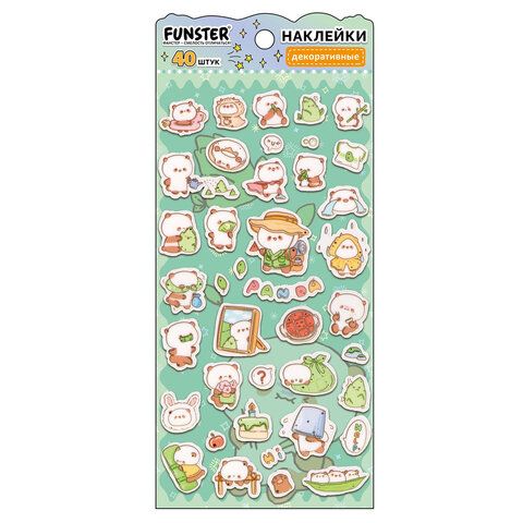 Наклейки декоративные "Милые животные", 17,5х9 см, ассорти 6 видов, FUNSTER (ФАНСТЕР), 6666081