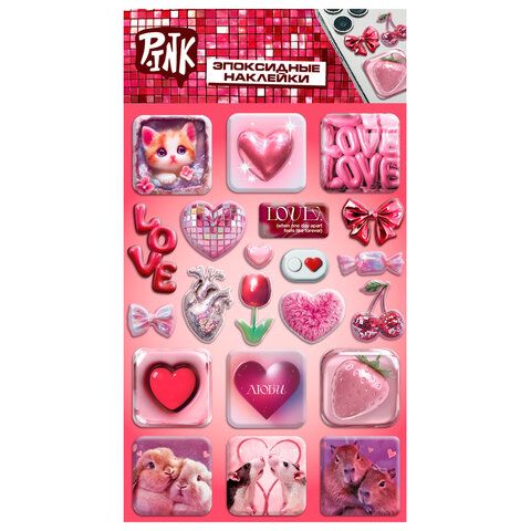 Наклейки эпоксидные АССОРТИ, 11х20 см, PINK