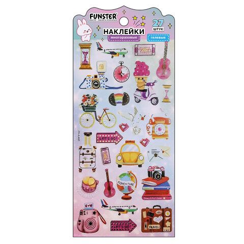 Наклейки гелевые "Акварельные мечты", 17,5х9 см, ассорти 6 видов, FUNSTER (ФАНСТЕР),666096