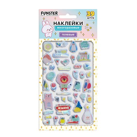 Наклейки гелевые "Блестящий микс", 15,5х9,5 см, ассорти 6 видов, FUNSTER (ФАНСТЕР), 666086