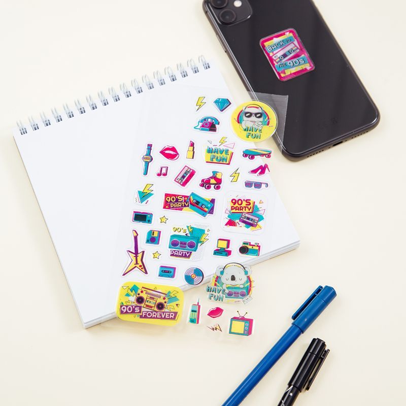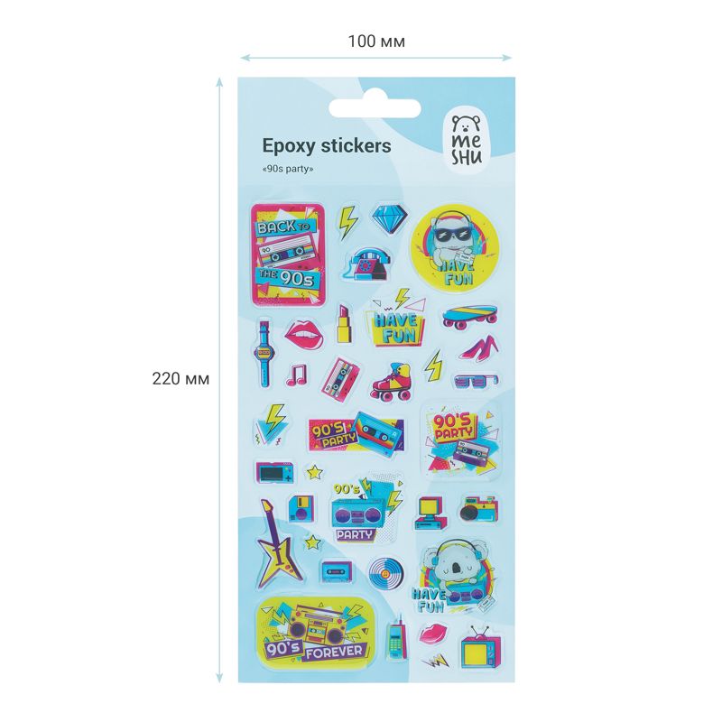 Наклейки гелевые MESHU "90th party", 10*22см, 35 наклеек, инд. уп., европодвес
