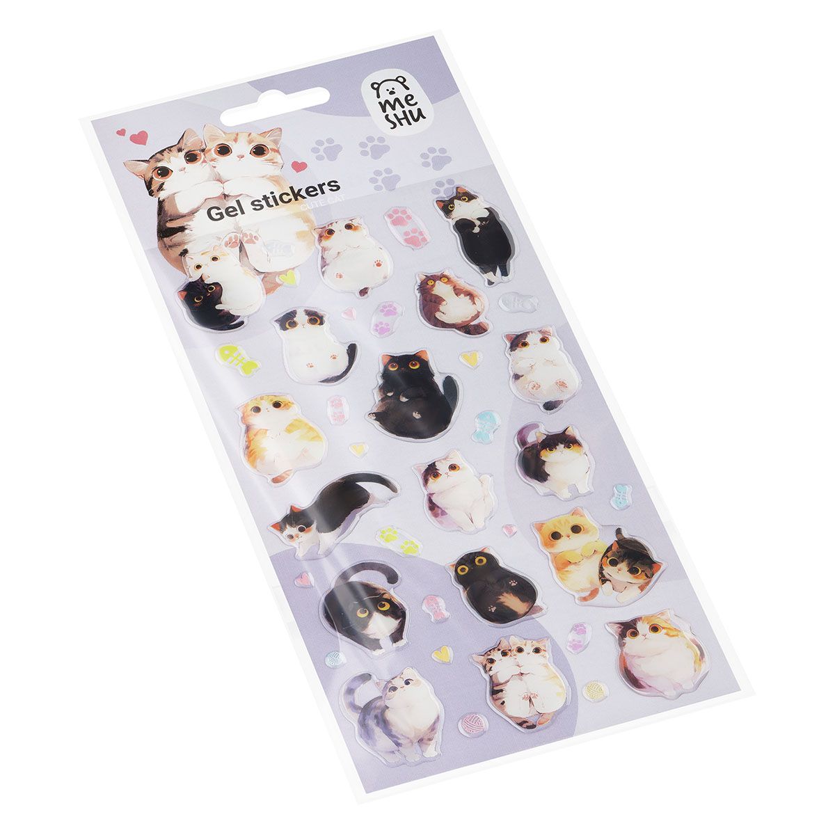 Наклейки гелевые MESHU "Cute Cat" , 10*23см, инд. уп., европодвес