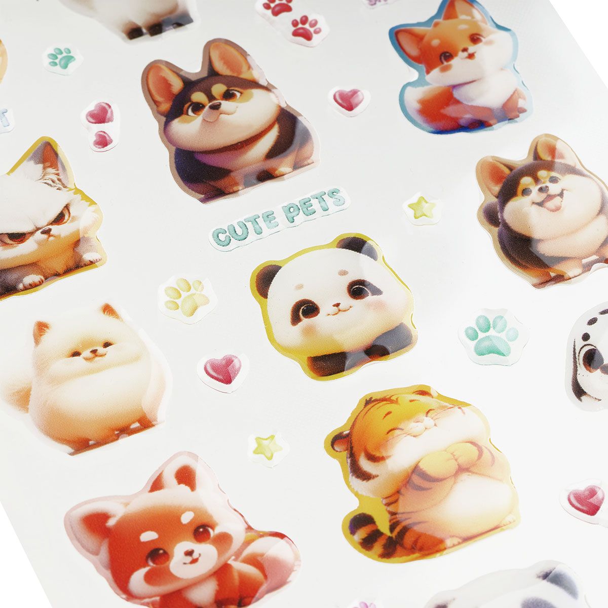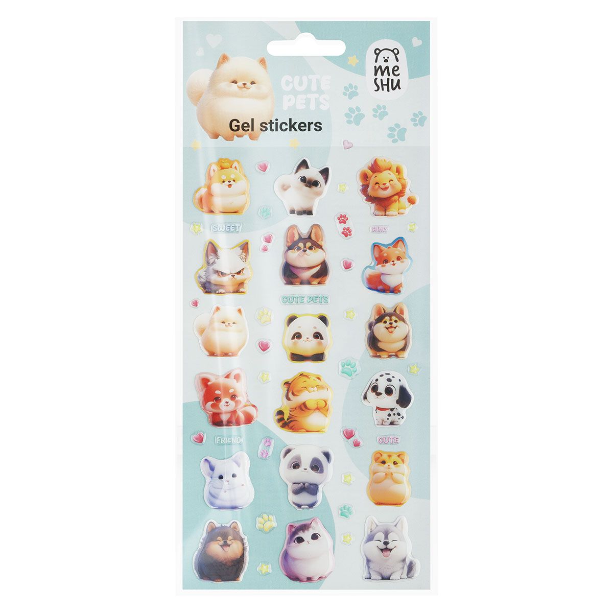 Наклейки гелевые MESHU "Cute Pets" , 10*23см, инд. уп., европодвес