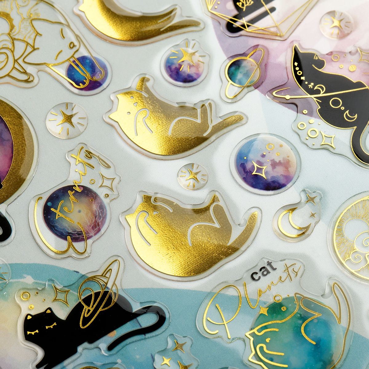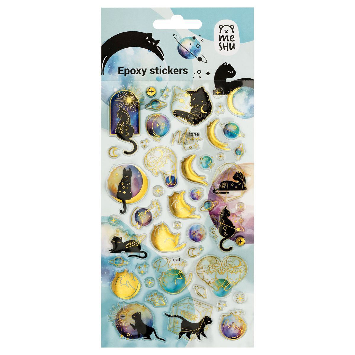 Наклейки гелевые MESHU "Moon cat", 10*23 см, пакет европодвес