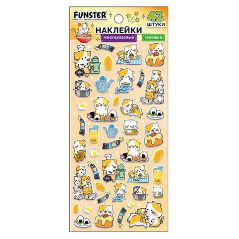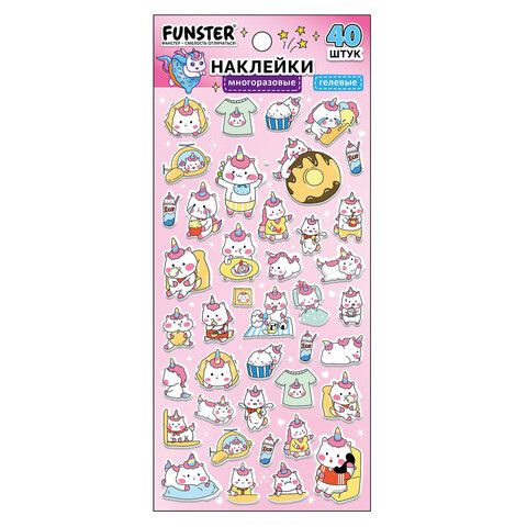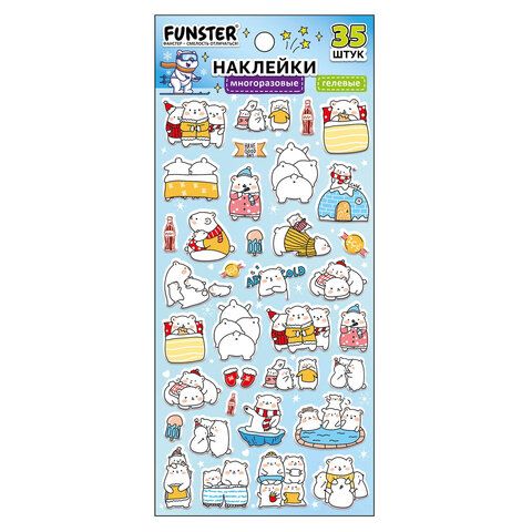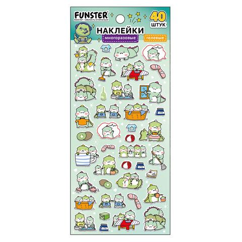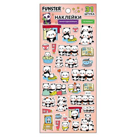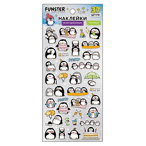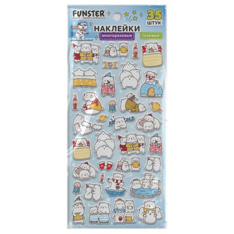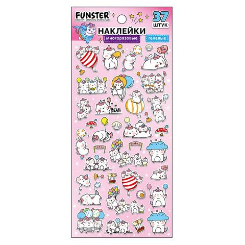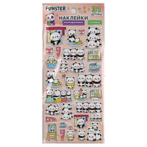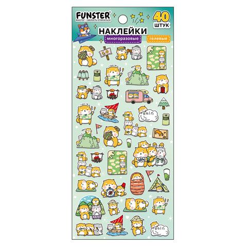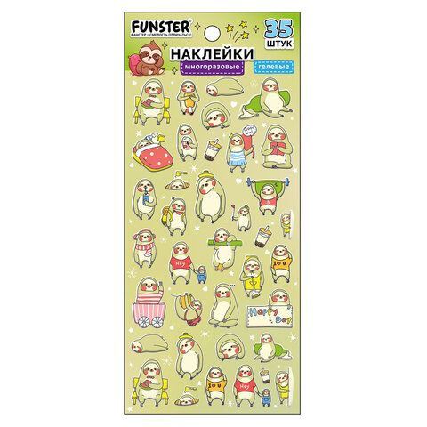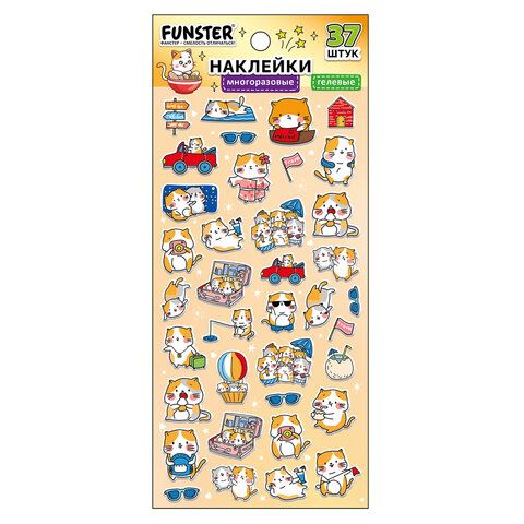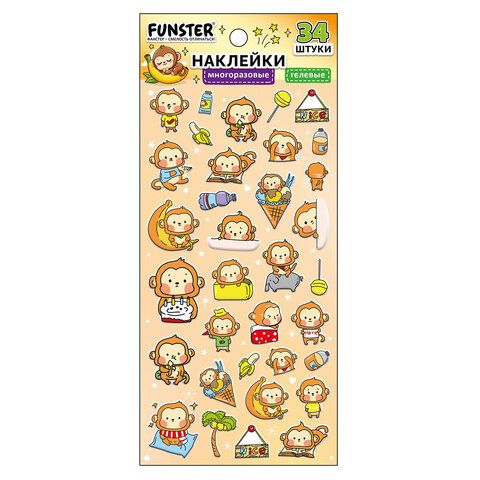 Наклейки гелевые "Зверяшки-обаяшки", 17,5х9 см, ассорти 12 видов, FUNSTER (ФАНСТЕР), 666085